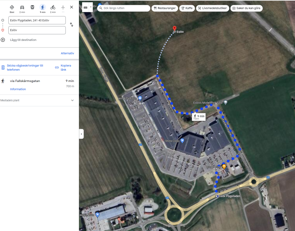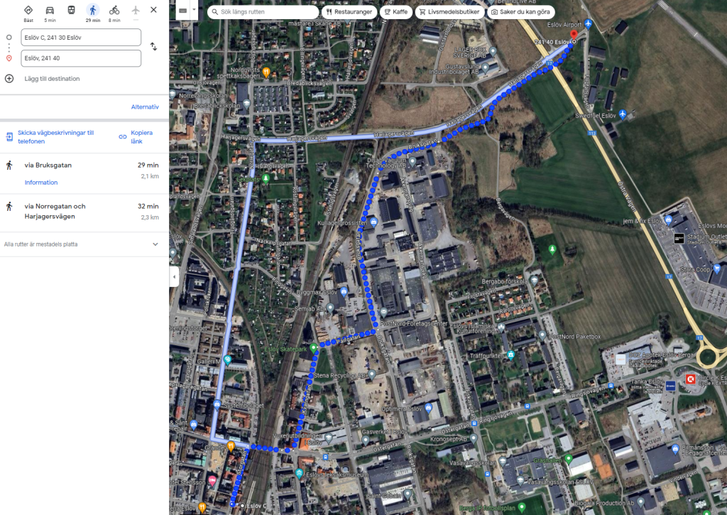 Google Maps: promenad från Stadsbuss 1 Flygstaden